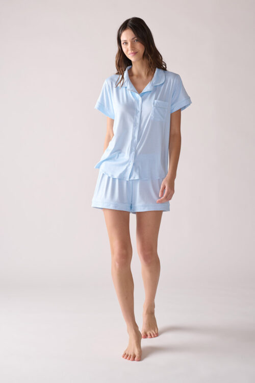 Nuestro estilo más vendido y más antiguo en ZTELLA ahora en jersey. El conjunto pantalon y camisa está confeccionado en tejido de punto y adornado con un estampado moderno. La camisa terminada con ocho botones de nácar tinturados y ribete de seda, este diseño de pantalon con corte recto tiene elástico a lo largo de la cintura para garantizar que se ajuste correctamente.