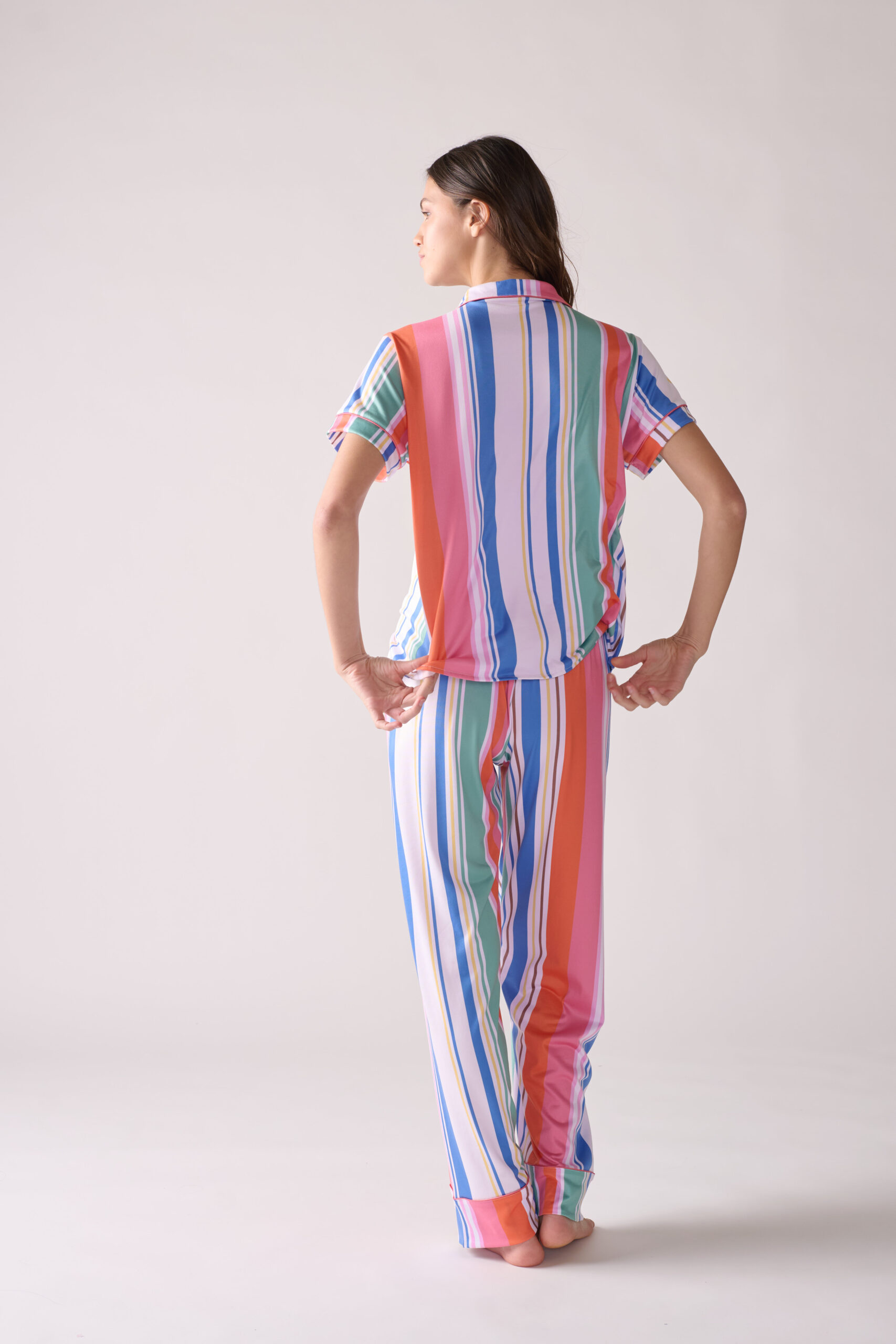 Nuestro estilo más vendido y más antiguo en ZTELLA ahora en jersey. El conjunto pantalon y camisa está confeccionado en tejido de punto y adornado con un estampado moderno. La camisa terminada con ocho botones de nácar tinturados y ribete de seda, este diseño de pantalon con corte recto tiene elástico a lo largo de la cintura para garantizar que se ajuste correctamente.