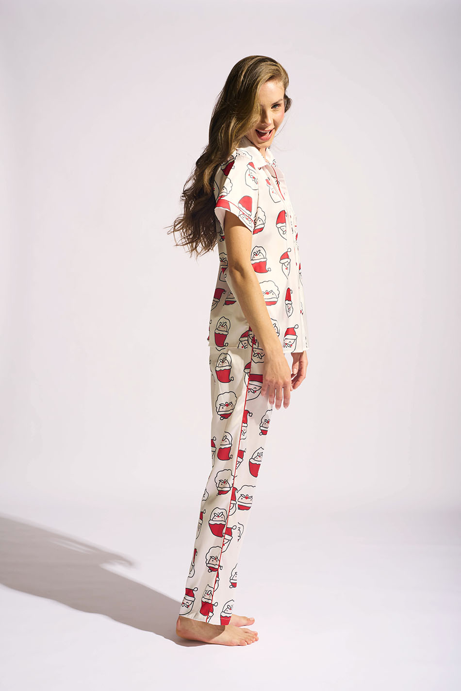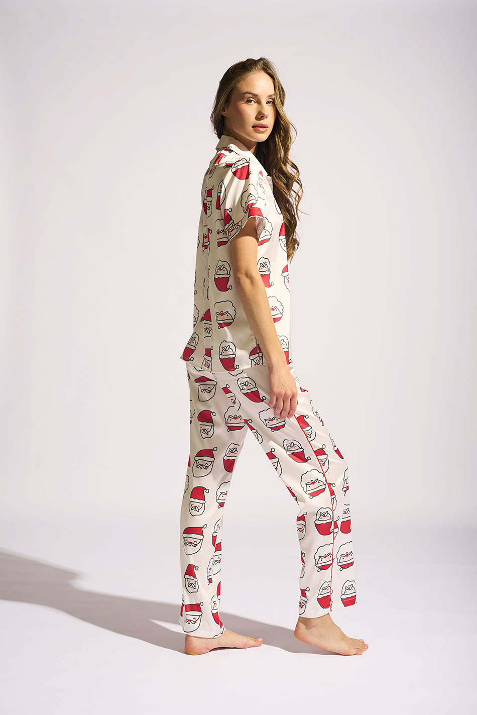 Nuestro estilo más vendido y más antiguo en ZTELLA, la pijama de seda con ajuste holgado. El conjunto de pantalon y camisa manga corta está confeccionado en seda poliester adornado con un estampado moderno. Terminada con ocho botones de nácar tinturados y ribete de seda, este diseño de pantalon con corte recto tiene paneles elásticos a lo largo de la cintura baja para garantizar que se ajuste correctamente.