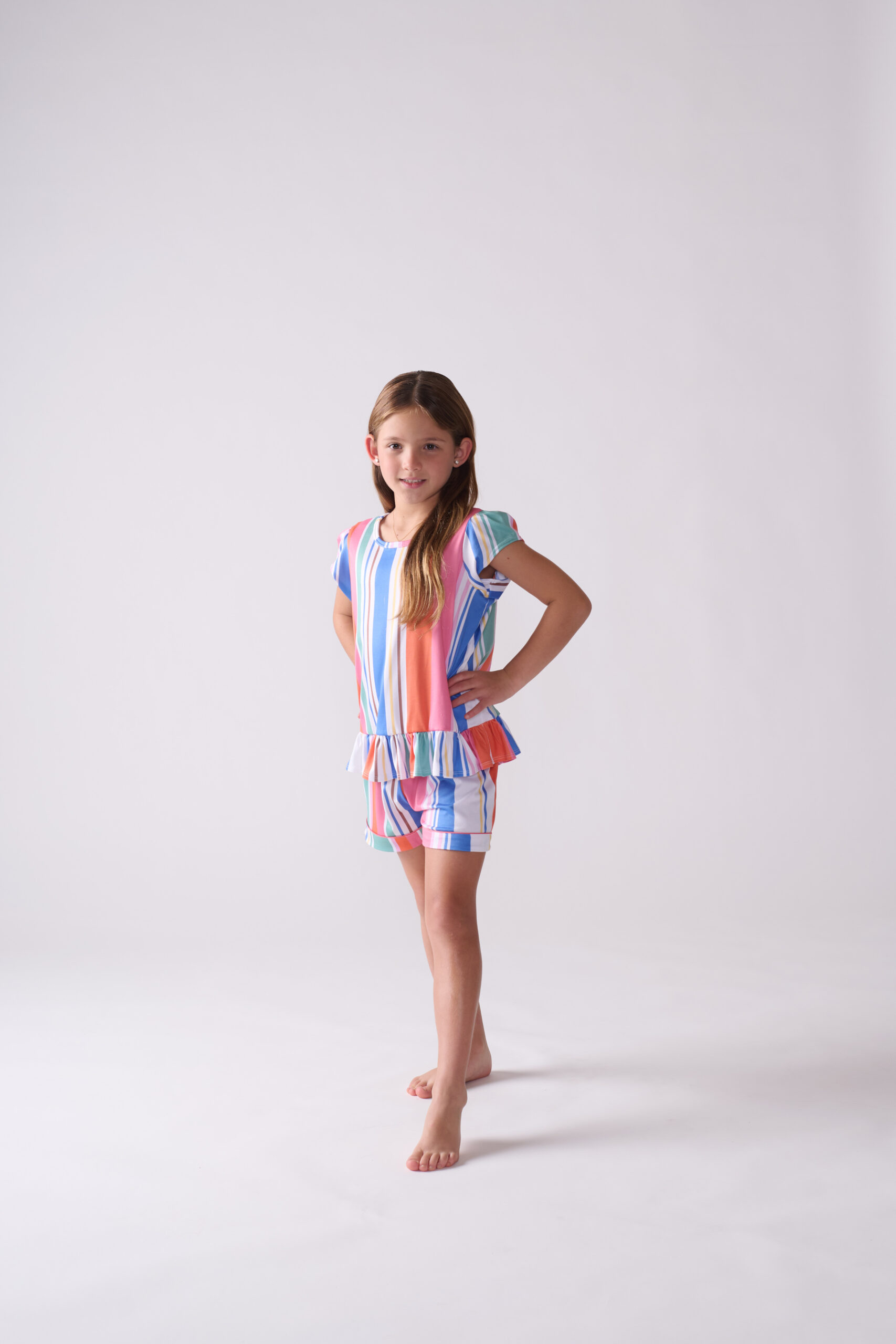 Nuestro estilo más comodo y divertido en ZTELLA, la pijama de Tshirt. El conjunto leggings y tshirt está confeccionado en nuestra nueva tela jersey y adornado con un estampado moderno. La Tshirt con corte en A lleva una arandela inferior, y el leggings con bota ajustada tiene paneles elásticos a lo largo de la pretina para garantizar que se ajuste correctamente.