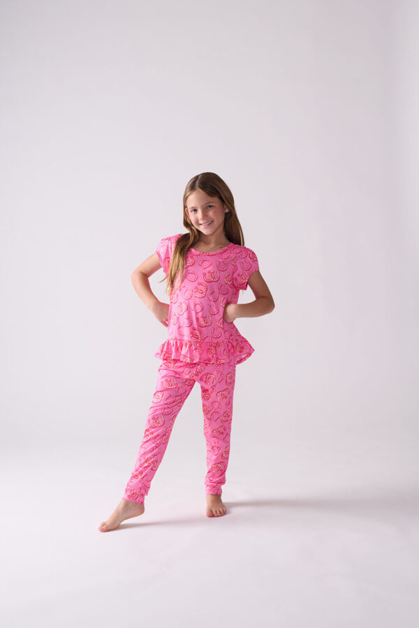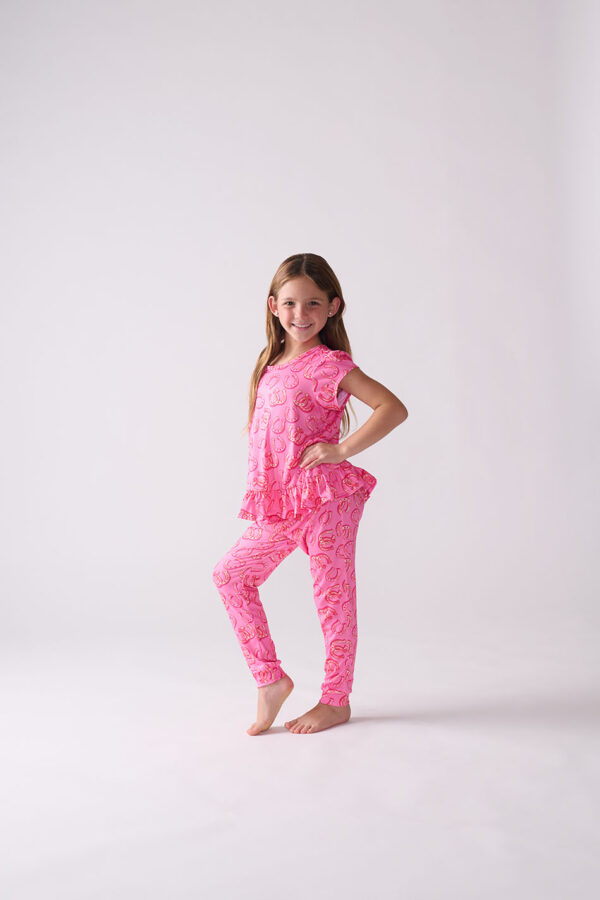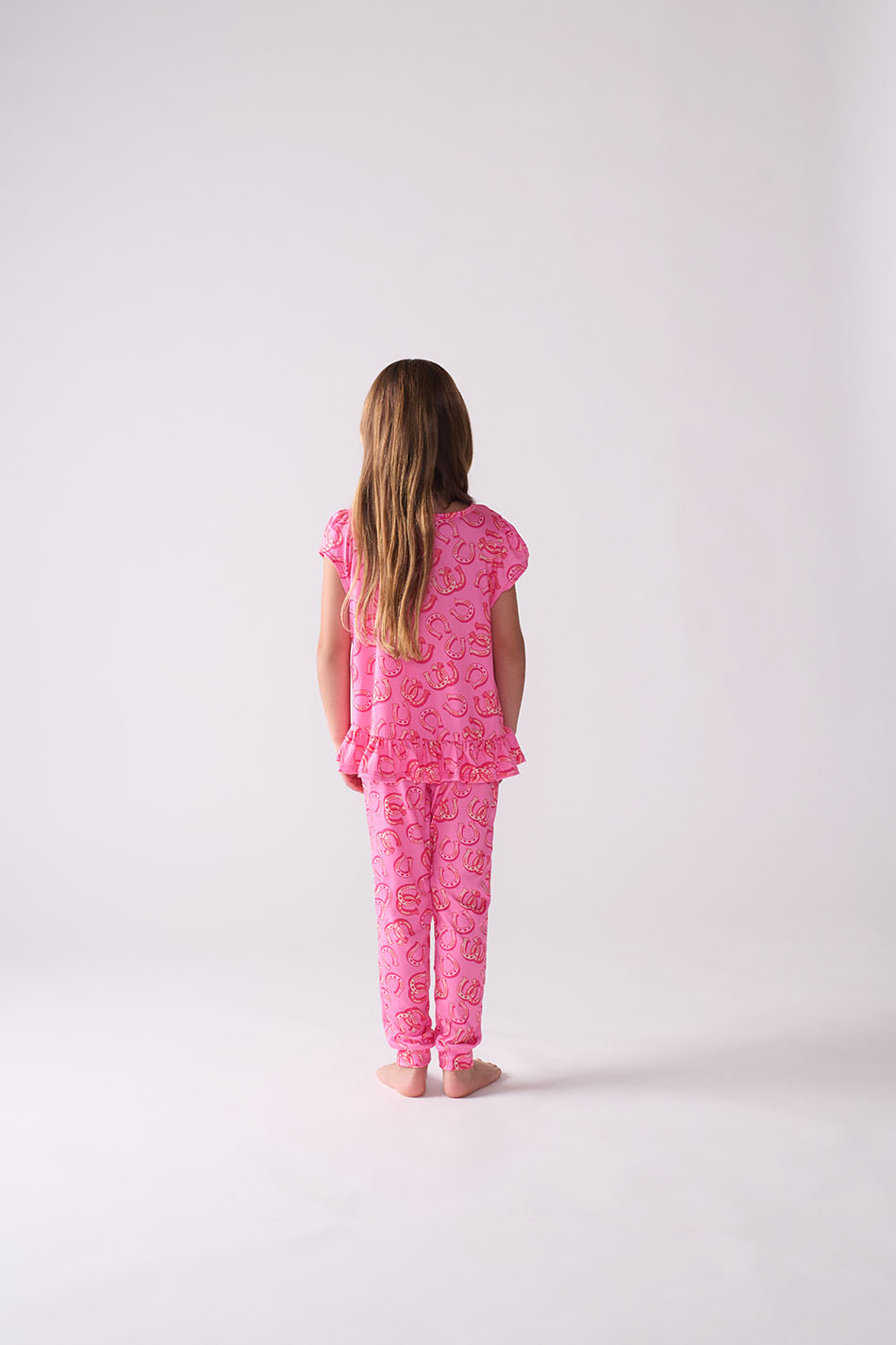 Nuestro estilo más comodo y divertido en ZTELLA, la pijama de Tshirt. El conjunto leggings y tshirt está confeccionado en nuestra nueva tela jersey y adornado con un estampado moderno. La Tshirt con corte en A lleva una arandela inferior, y el leggings con bota ajustada tiene paneles elásticos a lo largo de la pretina para garantizar que se ajuste correctamente.