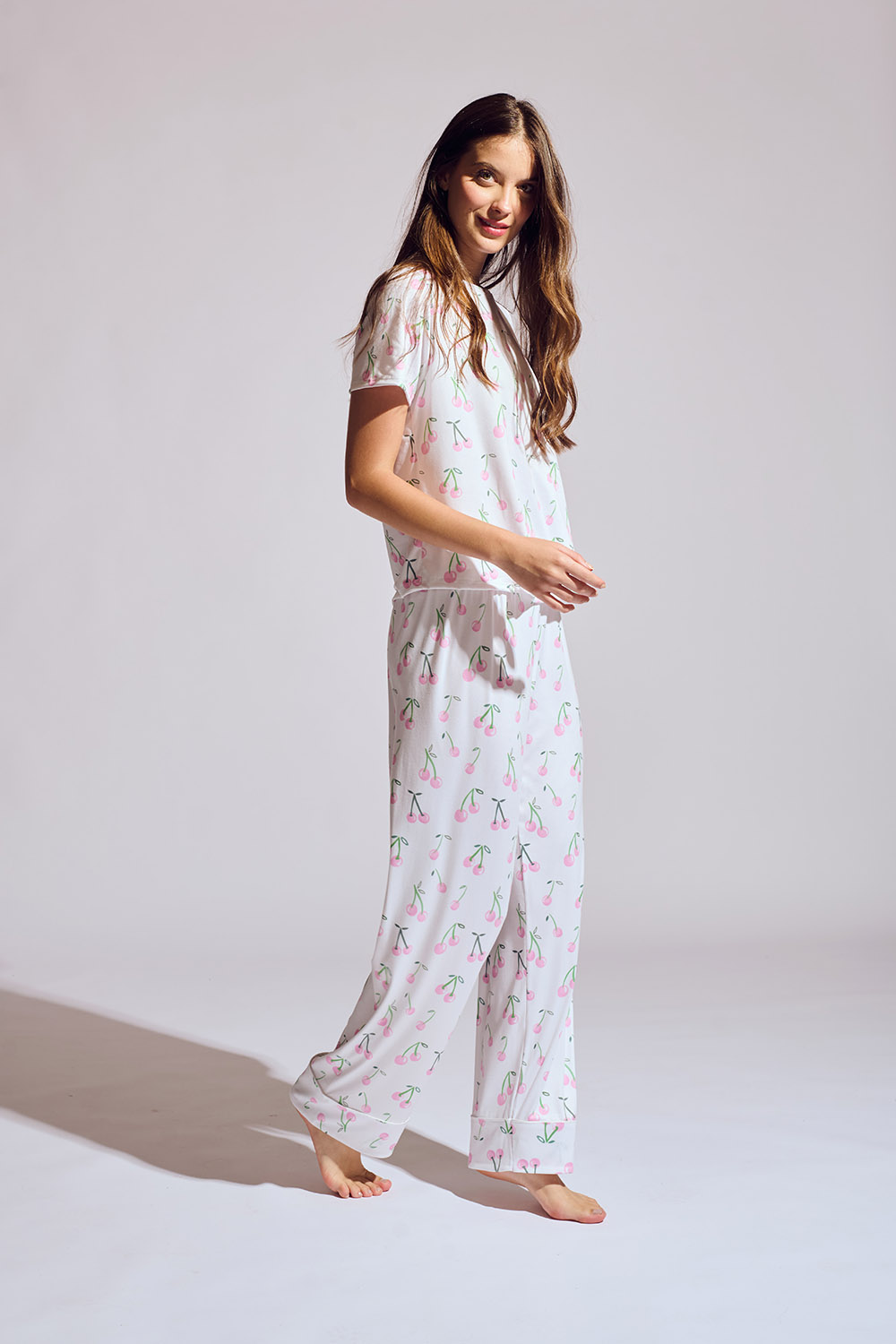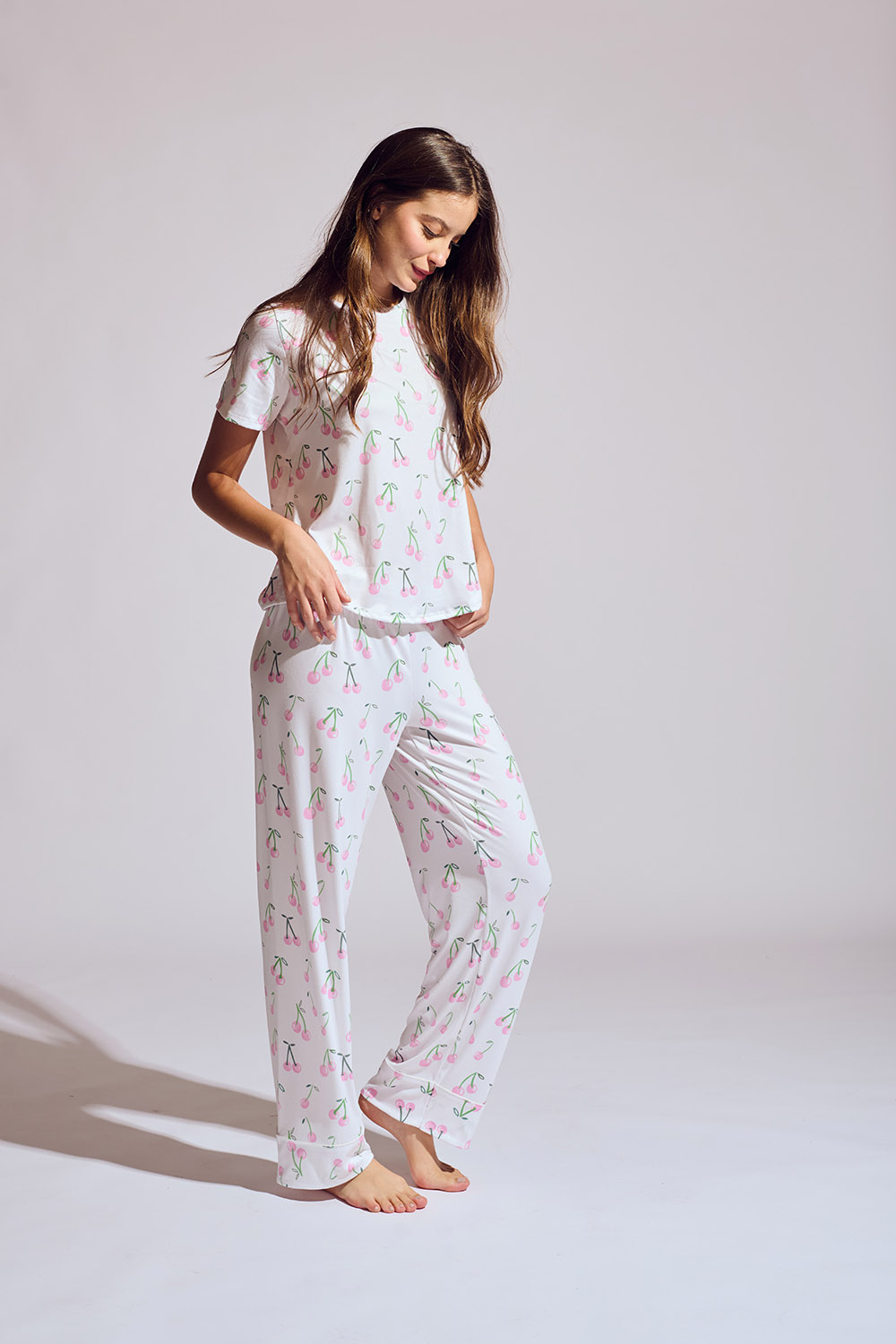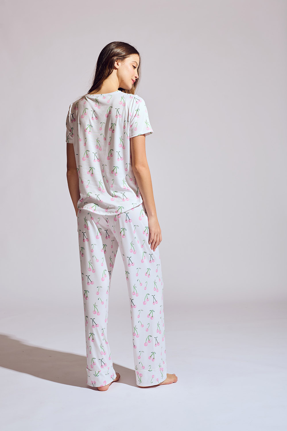 Nuestro estilo más versatil y juvenil en ZTELLA, la pijama de tshirt. El conjunto pantalon y tshirt está confeccionado en tejido de punto y adornado con un estampado moderno. Terminada con dos botones de nácar tinturados y ribete de satin, este diseño de pantalon con corte recto tiene paneles elásticos a lo largo de la cintura baja para garantizar que se ajuste correctamente.
