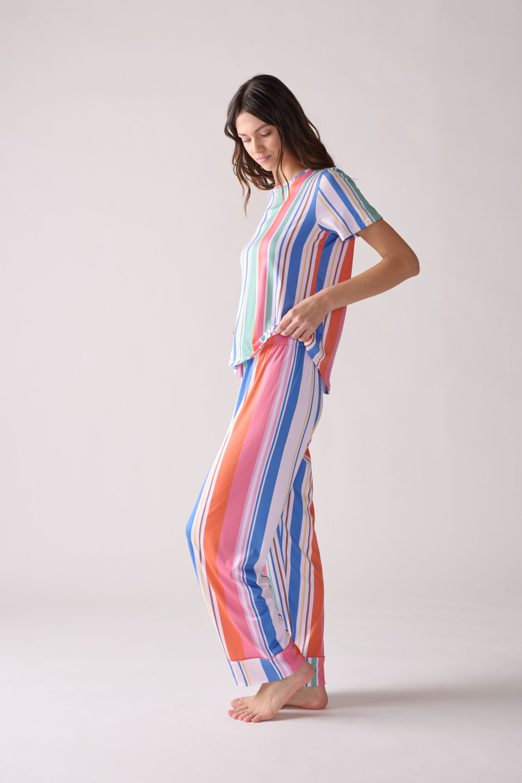 Nuestro estilo más versatil y juvenil en ZTELLA, la pijama de tshirt. El conjunto pantalon y tshirt está confeccionado en tejido de punto y adornado con un estampado moderno. Terminada con dos botones de nácar tinturados y ribete de satin, este diseño de pantalon con corte recto tiene paneles elásticos a lo largo de la cintura baja para garantizar que se ajuste correctamente.