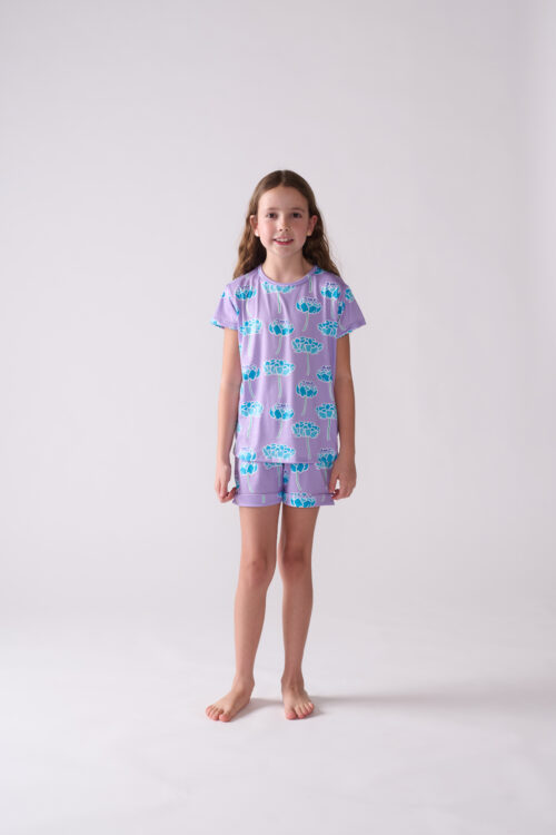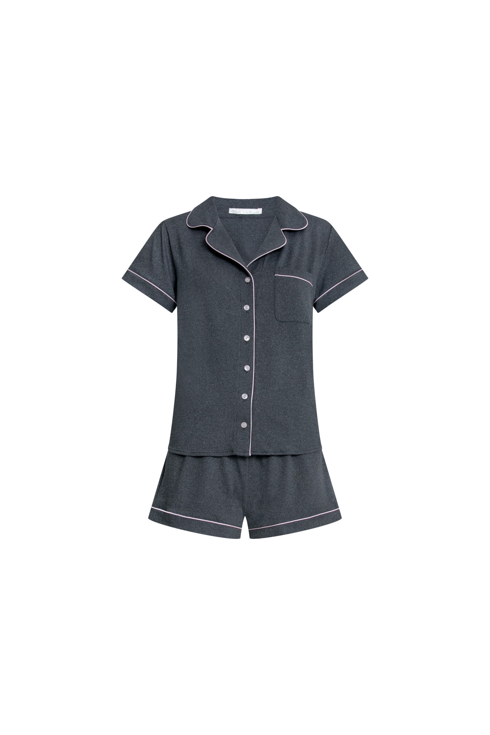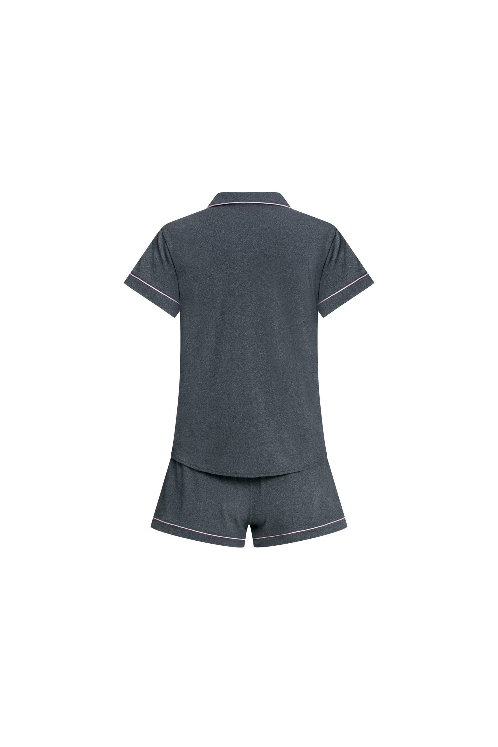 Nuestro estilo más vendido y más antiguo en ZTELLA, la pijama de seda. El conjunto short y camisa manga corta está confeccionado en seda poliester y adornado con un estampado moderno. Terminada con ocho botones de nácar tinturados y ribete de seda, este diseño de short tiene paneles elásticos a lo largo de la pretina completa para garantizar que se ajuste correctamente.