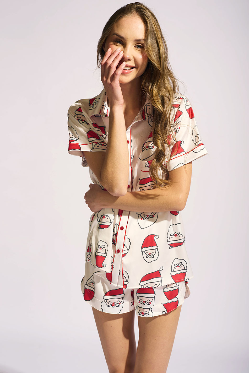 Nuestro estilo más vendido y más antiguo en ZTELLA, la pijama de seda. El conjunto short y camisa manga corta está confeccionado en seda poliester y adornado con un estampado moderno. Terminada con ocho botones de nácar tinturados y ribete de seda, este diseño de short tiene paneles elásticos a lo largo de la pretina completa para garantizar que se ajuste correctamente.