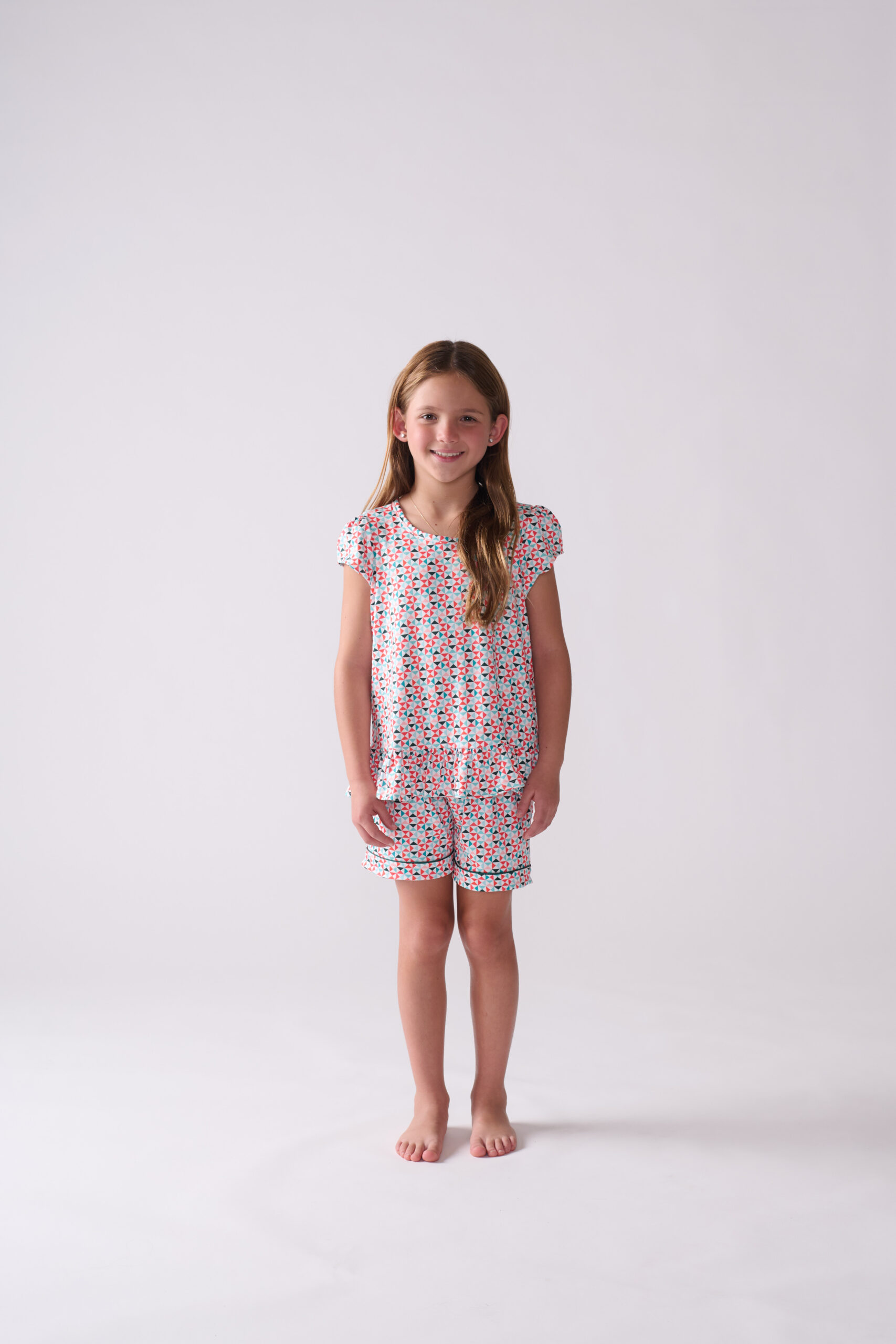 Nuestro estilo más comodo y divertido en ZTELLA, la pijama de Tshirt. El conjunto short y tshirt está confeccionado en nuestra nueva tela jersey y adornado con un estampado moderno. La Tshirt con corte en A lleva una arandela inferior, y el short tiene paneles elásticos a lo largo de la pretina para garantizar que se ajuste correctamente.