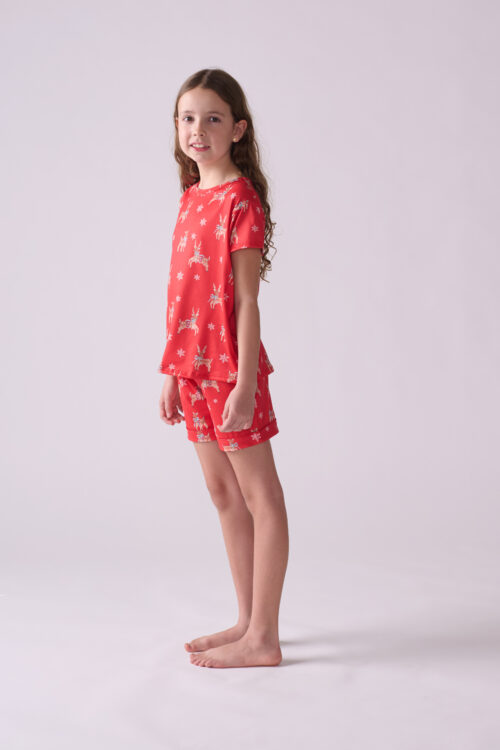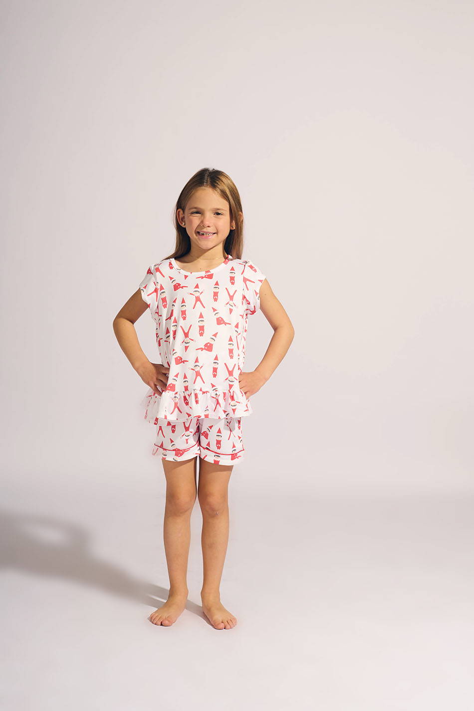 Nuestro estilo más comodo y divertido en ZTELLA, la pijama de Tshirt. El conjunto short y tshirt está confeccionado en nuestra nueva tela jersey y adornado con un estampado moderno. La Tshirt con corte en A lleva una arandela inferior, y el short tiene paneles elásticos a lo largo de la pretina para garantizar que se ajuste correctamente.