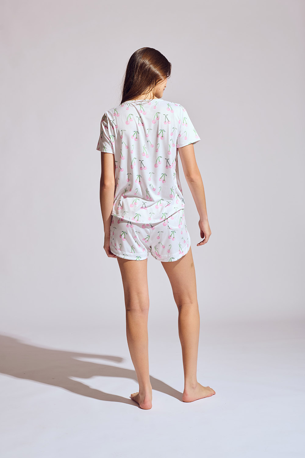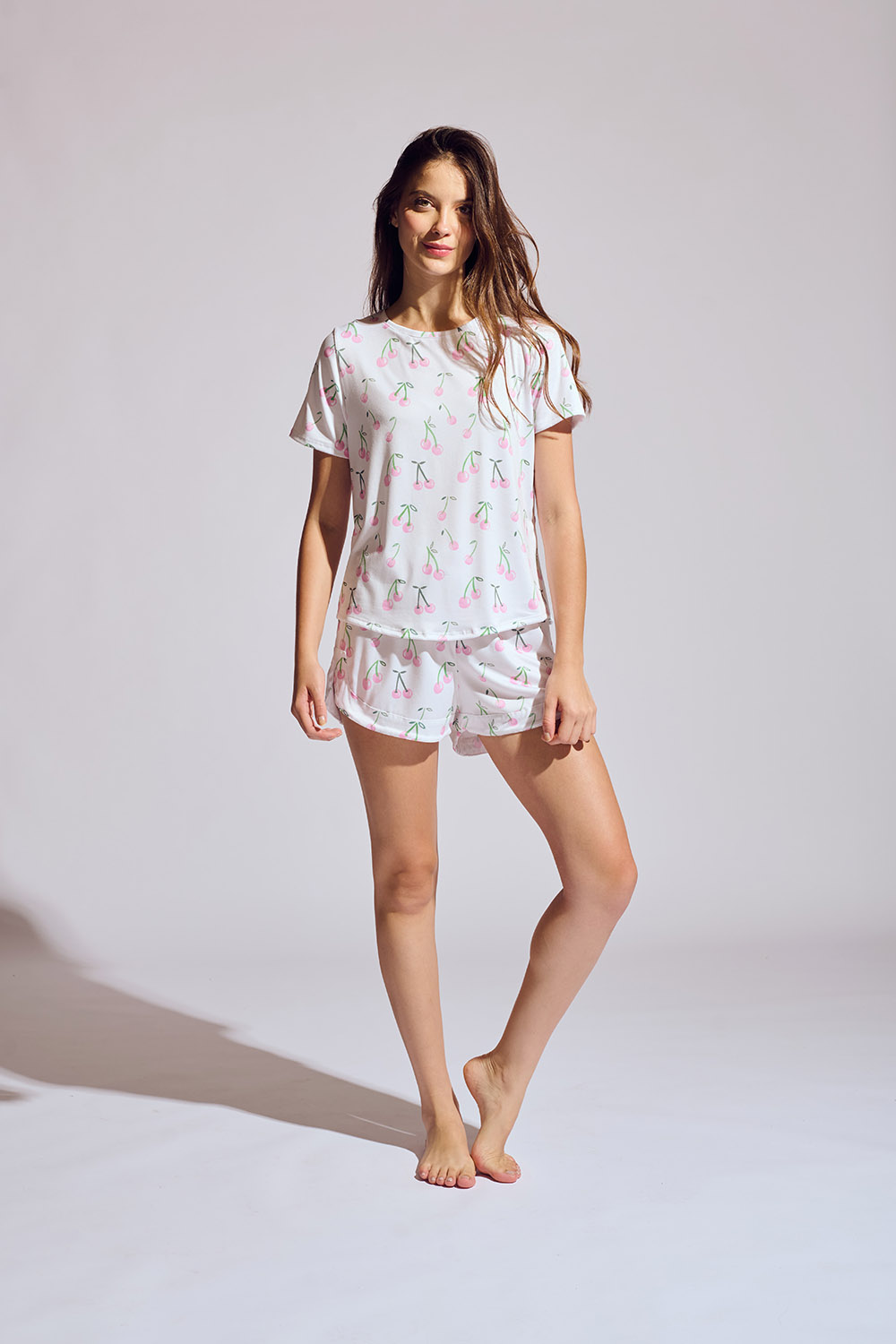 Nuestro estilo más versatil y juvenil en ZTELLA, la pijama de tshirt. El conjunto short y tshirt está confeccionado en tejido de punto y adornado con un estampado moderno. Terminada con dos botones de nácar tinturados este diseño de short tiene paneles elásticos a lo largo de la pretina completa para garantizar que se ajuste correctamente.